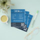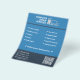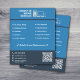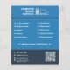 Un folleto en tonos de azul para una empresa de servicios de reparación de computadoras o actividades como técnico de TI, soporte de hardware y software, actualizaciones, mantenimiento y más, ya sea en tienda o en el sitio. Incluye una ilustración con una computadora de escritorio, una laptop y un teléfono móvil, así como un código QR, información de contacto completa decorada con iconos y una lista de servicios.