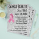 Personalice este llamativo folleto de recaudación de fondos para la lucha contra el cáncer de mama con sus propias palabras. El diseño cuenta con un elegante fondo floral decorativo y una cinta de concienciación. ¿Tiene un próximo beneficio contra el cáncer, recaudación de fondos, evento de beneficencia contra el cáncer, caminata de concienciación, carrera o función especial contra el cáncer? Cambie el texto, escriba sus propias palabras y cree un folleto personalizado especial para su causa personal haciendo clic en "personalizar" para realizar cambios. Nota: El reverso del folleto se deja intencionalmente en blanco para que nuestros clientes elijan su propia imagen, fotos, etc.