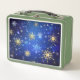 Navidades azules con copos de nieve de oro y joyas blancas. Copos dorados de nieve. XMAS.