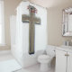 Fondo blanco de la cortina de ducha