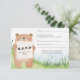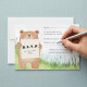 Invite a amigos y familiares con esta encantadora tarjeta RSVP, que incluye un oso acuarela dulce con un cartel de RSVP, colocado en un fresco prado de hierba. Perfecto para una ducha de bebé o para un evento con temática de la naturaleza, este diseño amigable y neutral en género le agrega un toque de madera a su celebración. Con amplio espacio para nombres de invitados, asistencia, necesidades dietéticas y detalles de contacto, es una forma práctica y encantadora de organizar respuestas mientras se crea una atmósfera acogedora que los huéspedes adorarán.