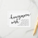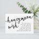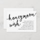 Celebre el comienzo de su viaje junto con nuestro elegante y rústico y moderno tema blanco y negro, la invitación de boda "de luna de miel" hecha con tarjeta adjunta, deseo, dinero. Con una sofisticada combinación de escritura moderna y encanto romántico, cada tarjeta está meticulosamente diseñada para transmitir la esencia de su día especial. Perfectamente adaptado para parejas que buscan una forma única de compartir sus sueños de luna de miel, esta tarjeta invita a sus seres queridos a contribuir con experiencias inolvidables. Ya sea enclavado en un sobre de lujo o presentado junto a sus invitaciones nupciales, nuestra tarjeta le agrega un toque de encanto a su celebración, prometiendo recuerdos muy apreciados que duran toda la vida. Diseñado por Teesha Derrick.