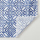 Fondo de tela con un patrón de baldosas mediterráneas antiguas en azul y blanco clásico.