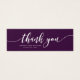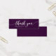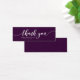 Esta elegante mini tarjeta contiene las palabras "gracias" en blanco y un color de fondo editable (haga clic en personalizar para acceder). Hace un gran favor de boda para tus regalos de favor de boda. Es fácil de personalizar; basta con reemplazar el texto del marcador de posición para añadir su propia información. Para obtener más opciones, como cambiar el tipo de letra, el tamaño del texto o el espaciado entre letras, haga clic en el botón "Personalizar". *Tenga en cuenta que la marca de agua Zazzle que aparece en la vista previa del zoom NO aparecerá en el producto impreso final. © Rosewood y Citrus