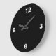 Un simple reloj de pared con fondo negro y grandes números blancos que marcan los 12, 6, 9 y 3. Haga clic en Personalizar para agregar texto o imágenes personalizados, cambiar los colores de fondo y más.