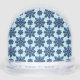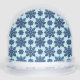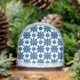 Espectáculos de nieve azules en un fondo claro, mostrando intrincados diseños de temática invernal.
