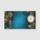 fondo turquesa, texturado, de vapor punk con bronce y oro, llave de plata y reloj. Estilo Steampunk.