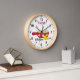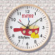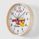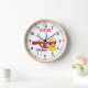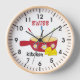 Reloj de pared divertido con fondue roja con edelweiss y un par de piezas de queso. El texto dice "cocina suiza" , pero puedes reemplazarla con la tuya . © ArianeC Ilustraciones-Todos los derechos reservados