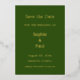 Forestal Verde Guardar la invitación al Relieve metalizado de fecha, por favor, personalice los nombres de la pareja, la fecha del boda y la ubicación del boda, utilizando la plantilla de personalización en línea antes de realizar el pedido. Si lo desea, puede personalizar la opción Guardar la fecha para un tipo de evento alternativo en lugar de un boda, cambiando el texto en consecuencia antes de realizar el pedido. La parte delantera de Save the Date incluye un hermoso texto de Relieve metalizado metálico real sobre un bonito fondo de color "verde del bosque", mientras que la parte posterior de la tarjeta es "verde del bosque".