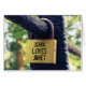 Una foto de un viejo candado oxidado dejado durante muchos años encerrado en algunas barandillas de hierro. Sólo personalizar los nombres y lo dice todo. Excelente como tarjeta de San Valentín, compromiso o boda.