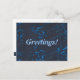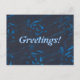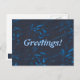 La pintura de formas abstractas de azul claro sobre un fondo azul marino mezclado, con Greetings, se imprime en postales personalizados. El texto se puede cambiar fácilmente en el formulario de plantilla.