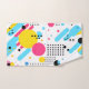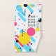 Formas divertidas y puntos en azul alegre, magenta y amarillo sobre blanco