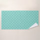 Toalla Verde azulada. Fondo azul intenso de grandes cuadrados de diamantes impresos en la toalla. El kit de baño, de mano y de lavabo está disponible.