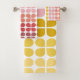 Este elegante juego de toallas de baño presenta un estilo retro de formas moderadas en una puesta de sol de colores cálidos como amarillo, coral y rojo. Gran idea de regalo.