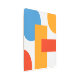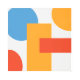 Arte moderno de formas geométricas. Compuesto por círculos y rectángulos de color azul, naranja y rojo sobre un fondo blanco.