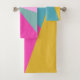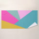 Un diseño geométrico abstracto colorido con colores vivos y llamativos de rosa caliente, turquesa y amarillo.