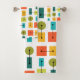 Este diseño artístico abstracto de estilo moderno de mediados de los años 50 tiene cuadrados, rectángulos y círculos y líneas de negrita.