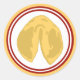 Un pegatina con un ilustracion de una galleta de la fortuna en el centro. Cookie está rodeada por un círculo rojo. El círculo está lleno de blanco. El fondo es oro. Buscar elementos coincidentes en el paquete de Jill.