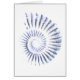 Un fósil minimalista, gráfico y simple de amonita en azul y blanco inspirado en uno que se encuentra en la costa Jurásica.