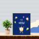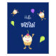 Poster con adorables quequitos felices sobre fondo azul oscuro y globos fiestas