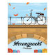Afiche de viaje Herengracht Canal Amsterdam con una bicicleta sobre un puente.