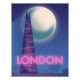 Afiche de viajes Neon London con luna llena sobre el famoso Skyline de Londres.