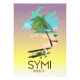 Cartel de viaje de Symi Grecia con un avión ligero y un mapa del popular destino.
