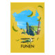 Funen , Dinamarca mapa de viajes afiche de arte impreso.