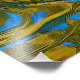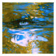 Aguas místicas: Un ojo aparece en medio de un mar giratorio dorado y azul, con un sutil reflejo de una cara en el agua. Esta imagen surrealista transmite la idea de explorar las profundidades de nuestra psique y la dualidad de percepción y realidad, donde los sueños y la conciencia se entrelazan.