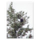 Fotografía de un águila calva norteamericana en un árbol de coníferas que tiene muchos conos de pino colgando de sus ramas. El águila madura está encaramado en una delgada extremidad que recorre el paisaje. El cielo está cubierto por una nube gris clara, lo que indica una temperatura fría. Derechos reservados ©2021 Kimberly J Tilley.
