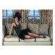 Representación digital 3D de un hermoso chica en el vestido estilo moda de los años 20 en una habitación vintage, gran ciudad y cielo azul en las ventanas