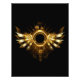 alas mecánicas brillantes, con engranajes y estandarte redondo de latón. Steampunk