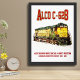 Locomotora diésel de alta calidad Alco C-628 con colores amarillo y verde. American Locomotive Company Century 628 Locomotora para los trenes de mercancías de Chicago y Noroeste. Obra de arte detallada que destaca sus colores vivos y su atractivo rústico, todo ello con un fondo de textura. Captura la nostalgia y el diseño industrial de los trenes clásicos.