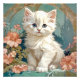 Imagen con un gato blanco al estilo de Alphonse Mucha! Este gatito de ojos azules y esponjoso posa con flores rosadas y mantas azules. ¡Un regalo fabuloso para los amantes del gato y de los coleccionistas Art Nouveau!