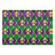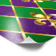 joyas, fondo del Mardi Gras de rhombus violeta y verde, lirios dorados decorados.