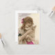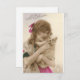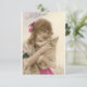 Hermosa joven con su pequeño perro blanco en una antigua postal francesa de fotos para el Día de Santa Catalina. Personalizado restauró la imagen.