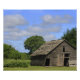 Una toma de un viejo granero con cielo azul, nubes blancas y árboles, con hierba. Es brillante y colorido. Disparo en Kansas. Eso es una foto ampliación.