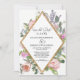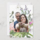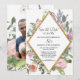 Coloque su fotografía de compromiso en la parte posterior elegantemente rodeada de flores silvestres modernas y sueltas como un recuerdo para familiares y amigos. Hermosas flores pintadas a mano del romántico jardín de la cabaña inglesa y flor silvestre con un marco moderno de brillo falso de rosa dorada con forma geométrica hace una colección de invitaciones de boda elegantemente simple. Atemporal, clásico y refinado, pero con un tema contemporáneo chic y de moda. Perfecto para un jardín al aire libre, botánico vintage, granja o ambiente de granero o una celebración boho de estilo bohemio. Tema de boda perfectamente refinado y romántico. El fondo se muestra en blanco, pero puede cambiarlo a cualquier color que desee. Un conjunto completo de productos está disponible para combinar con bodas, fiestas de soltera o cumpleaños. Arte pintado y protegido por derechos de autor por Audrey Jeanne