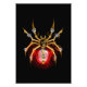 Araña mecánica, de vapor punk con oro, engranajes de latón y una lámpara de vidrio roja sobre un fondo negro. Estilo Steampunk.