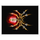 Araña mecánica, de vapor punk con oro, engranajes de latón y una lámpara de vidrio roja sobre un fondo negro. Estilo Steampunk.