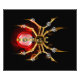 Araña mecánica steampunk con engranajes de oro, latón y una lámpara de vidrio roja sobre un fondo negro. Estilo steampunk.