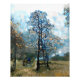 Diseño artístico otoñal de un abeto y una persona que disfruta de paz y tranquilidad.