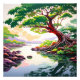 Un tranquilo cuadro paisajístico con un solitario árbol a orillas de un río que fluye. Los azules y verdes tranquilizantes crean una sensación de serenidad, perfecta para cualquier casa u oficina.