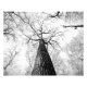 Mirando verticalmente los árboles negros y blancos sin hojas en la silueta en un día nublado.