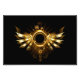 Areas mecánicas brillantes, con engranajes y banner redondo de latón. Steampunk