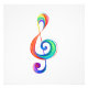 Tecla musical extraída de capas multicolores de colores arcoiris sobre fondo blanco.