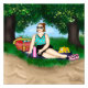 Una señorita amable simplemente descansando en la playa sobre una manta con su teléfono, libro y gafas de sol puestas. Arte caprichoso con arena, hierba, árboles, una mujer, bolsa de playa para ponerte en un ambiente frío.
