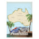 Australia mapea poster de viajes vintage con un hermoso auto clásico viejo.
