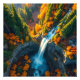 Bring the magic of autumn into your everyday space with this breathtaking canyon waterfall artwork. Rich fall foliage in glowing shades of gold, amber, and crimson flows gracefully around a serene turquoise river, creating a sense of calm, depth, and natural wonder.