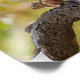 Una tierna posa para la cámara en una extremidad de árbol contra un fondo de color otoñal.